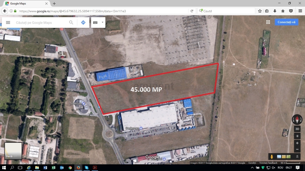 Zona Dedeman, teren situat in intravilanul Municipiului Brasov, cu destinatie industriala, in suprafata de 4.5 ha, cu deschidere 102 ml la DN 13.
